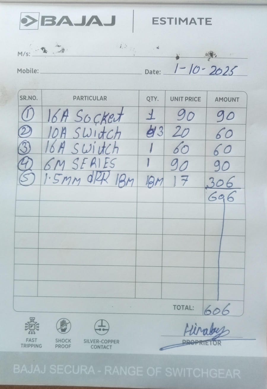 | 2025-04-12 | Electrical Goods | ₹ 0.00 | ₹ 3,040.00 | ₹ 7,066.00 | ₹ 0.00 | |||||
