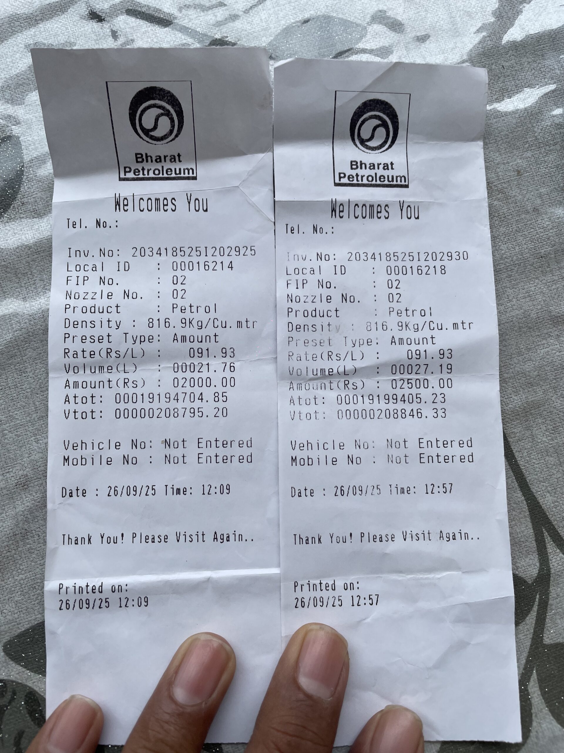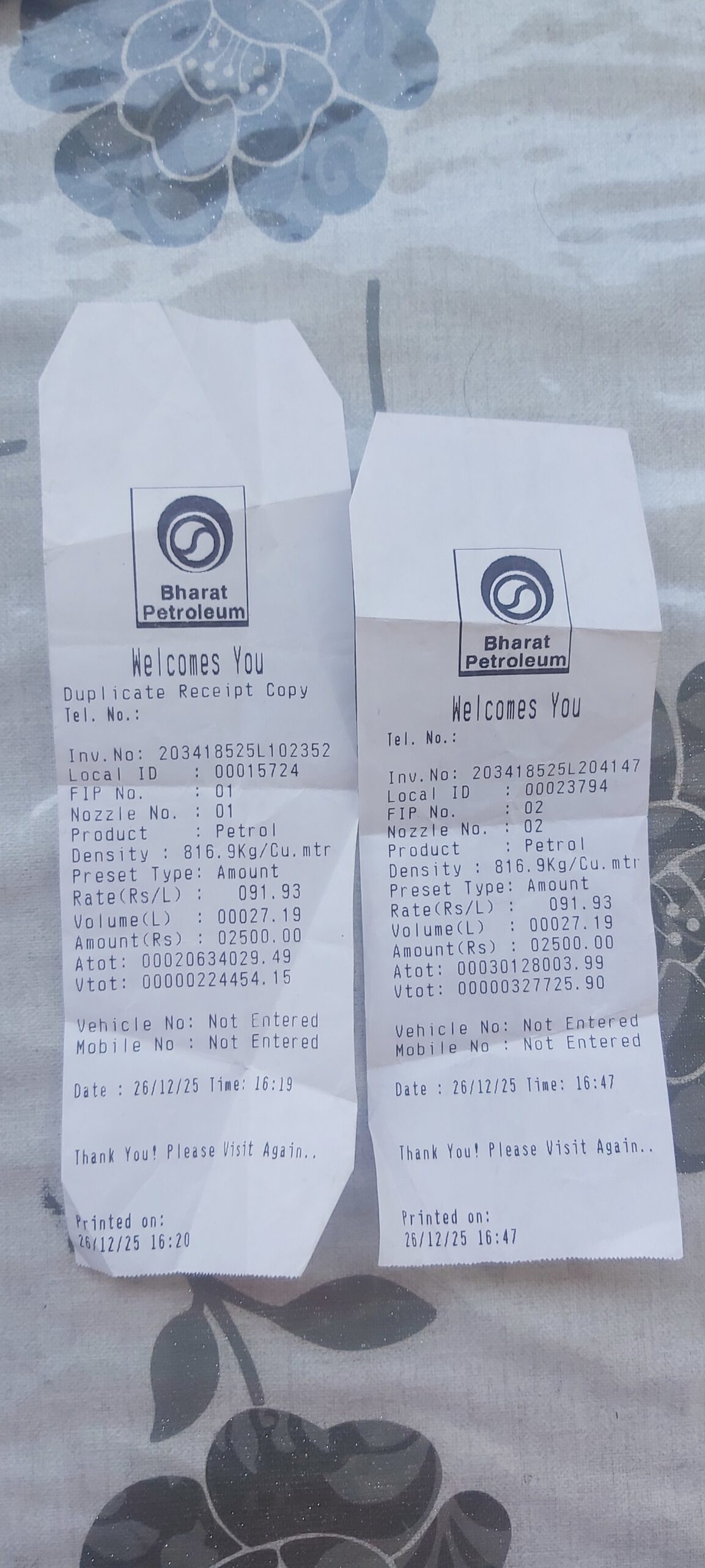 | 2025-01-10 | Petrol | ₹ 0.00 | ₹ 100.00 | ₹ 11,761.00 | ₹ 0.00 | |||||