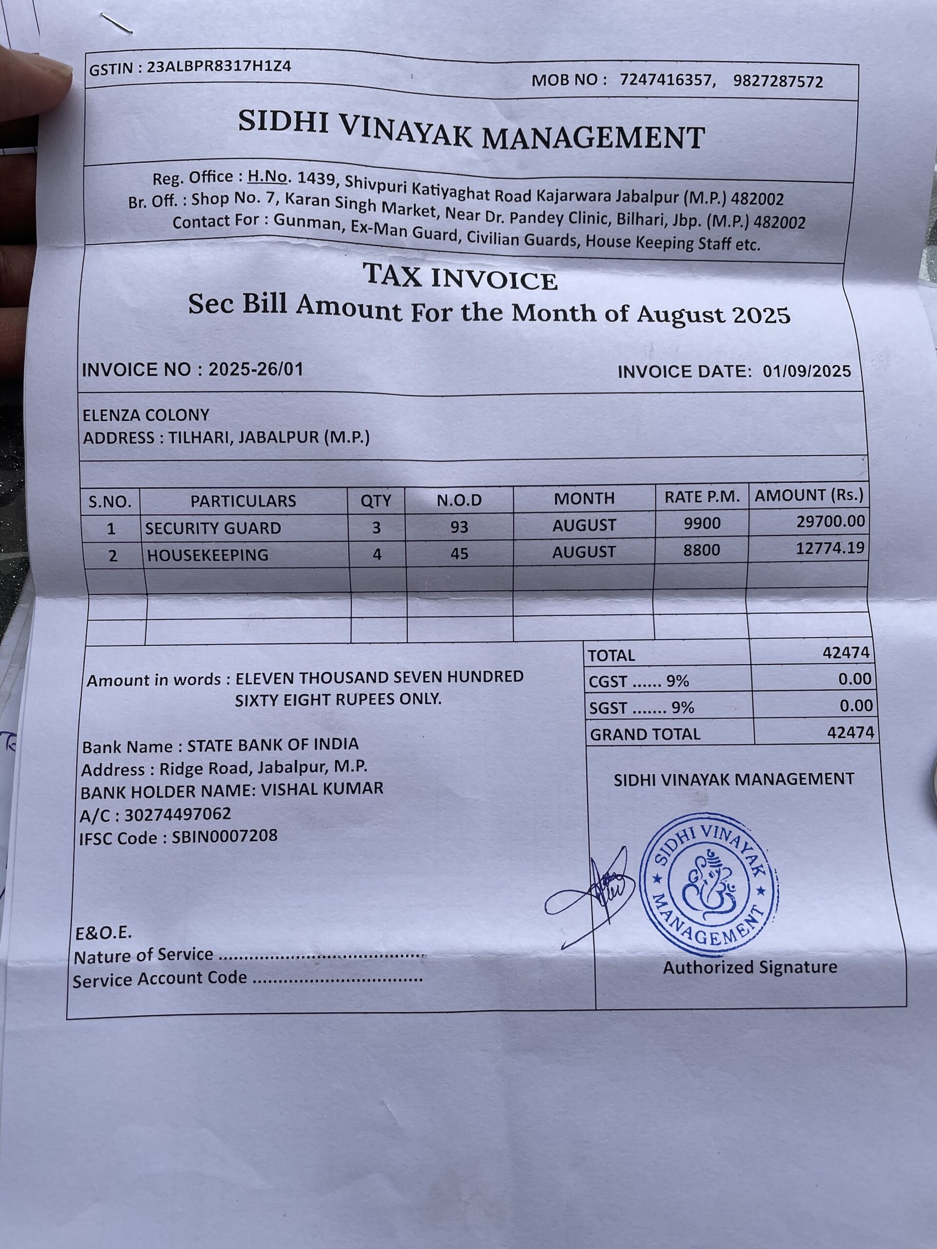 | 2025-04-16 | Paid to Vaibhav Lalwani (Repair of Barrier) | ₹ 0.00 | ₹ 2,406.00 | ₹ 4,600.00 | ₹ 0.00 | |||||