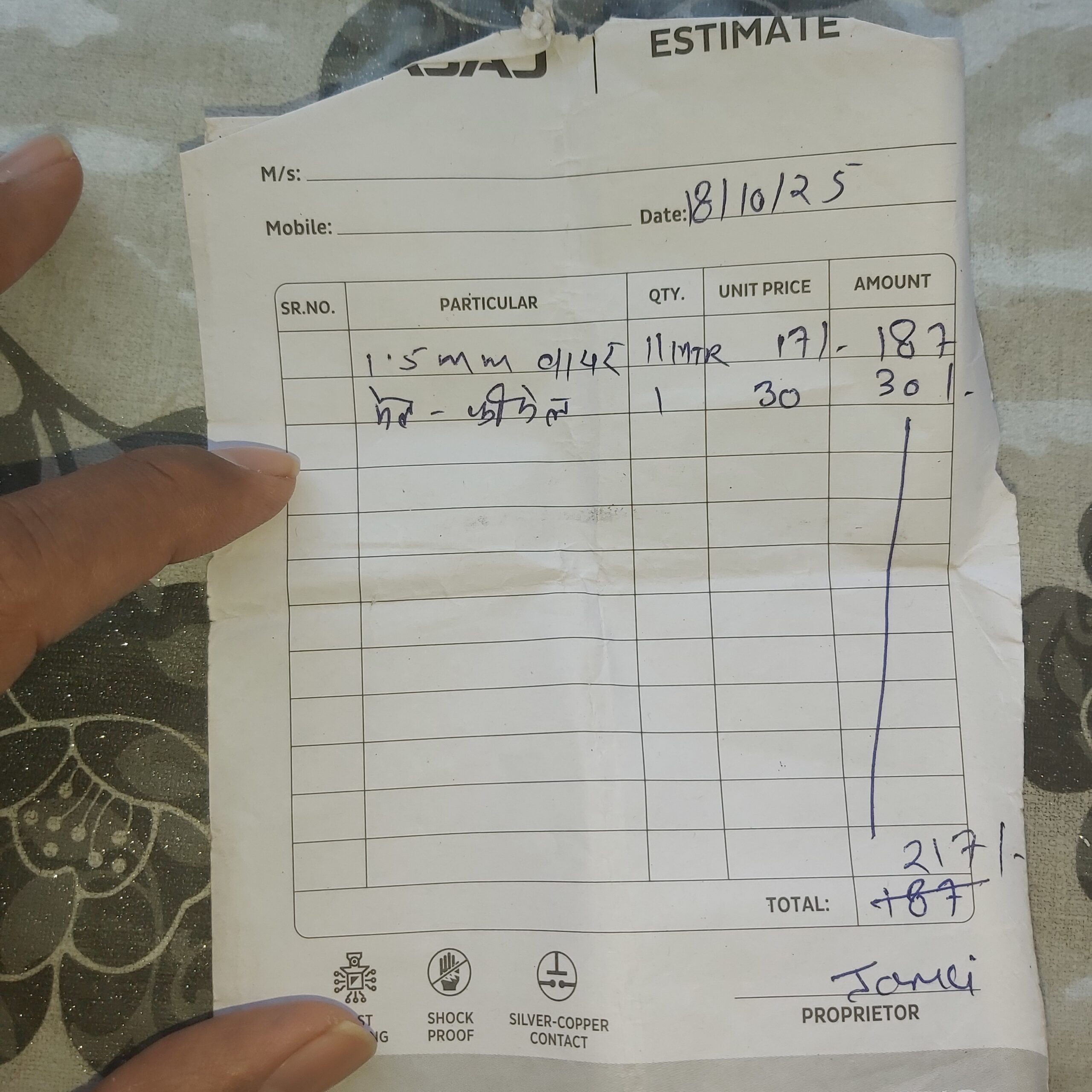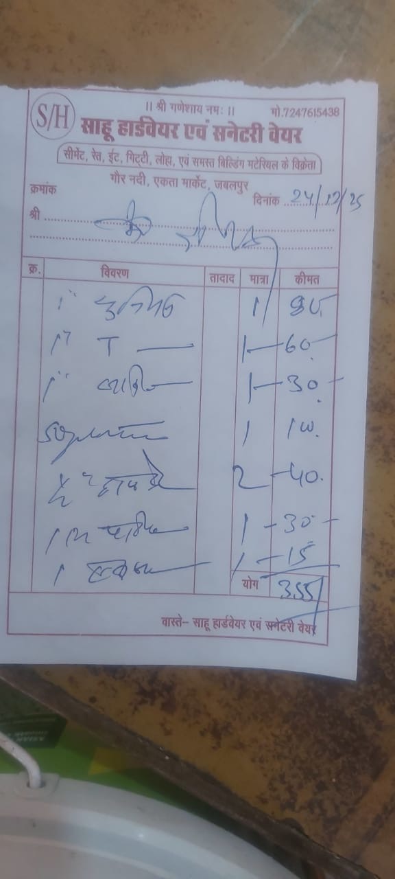 | 2025-12-24 | Plumbing Material 📎 | ₹ 166.00 | ₹ 355.00 | ₹ 3,775.71 | ₹ -278,483.00 | |||||