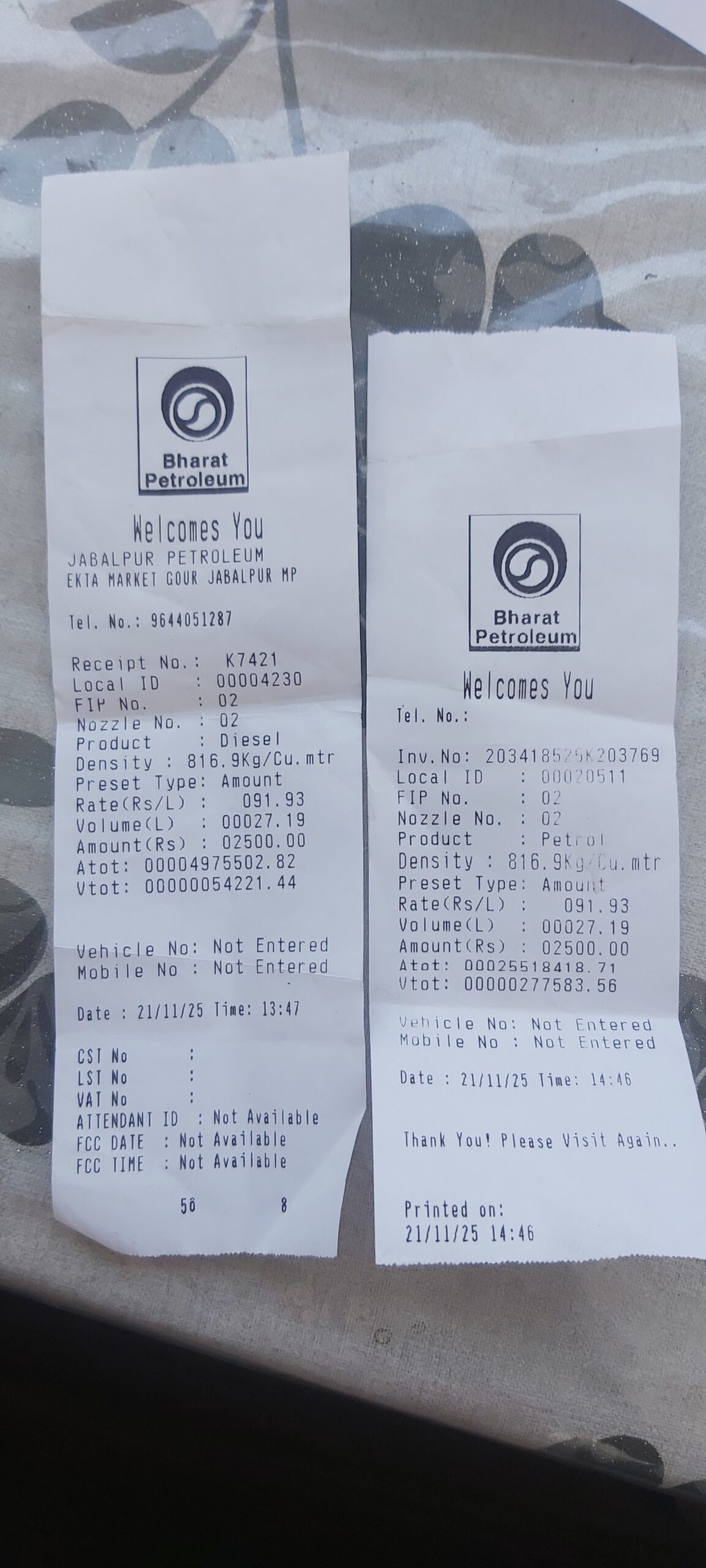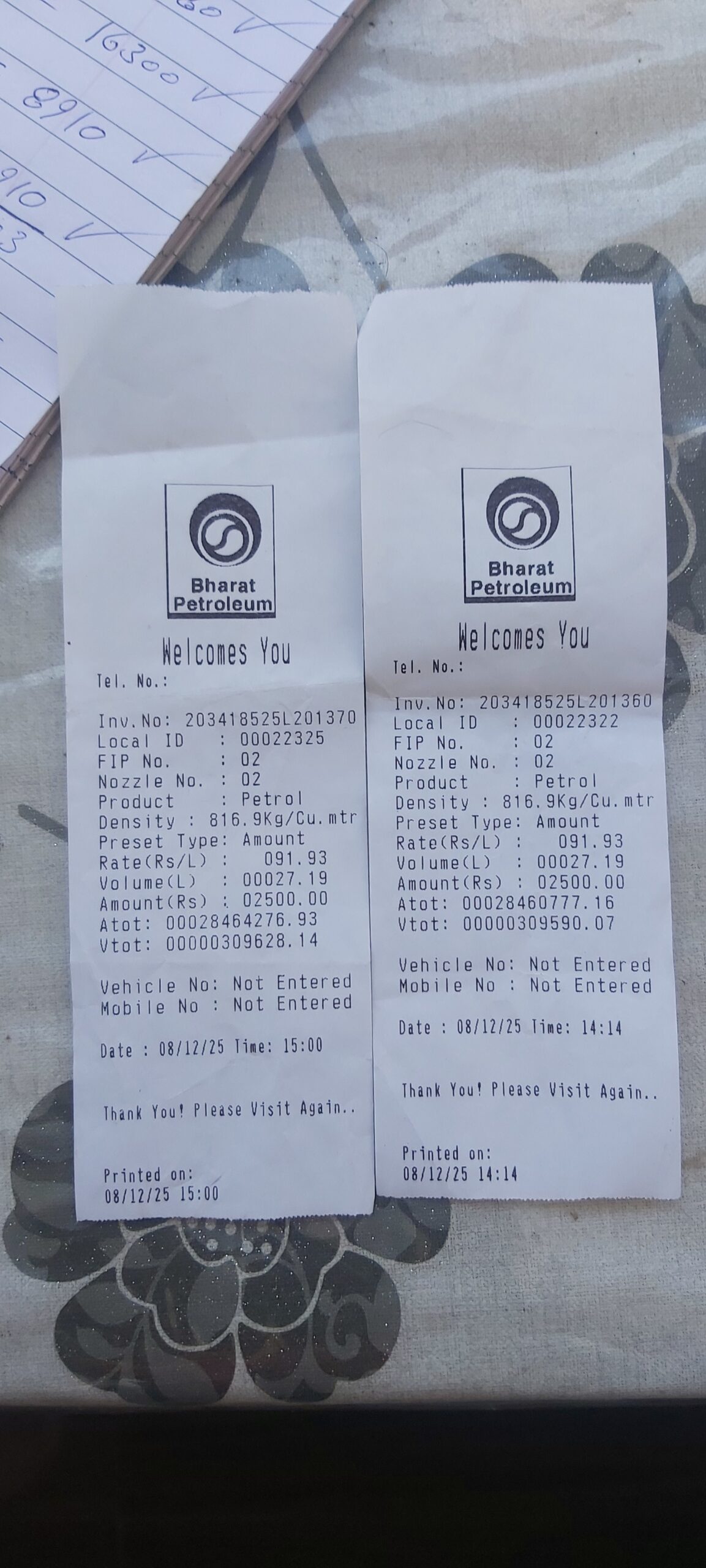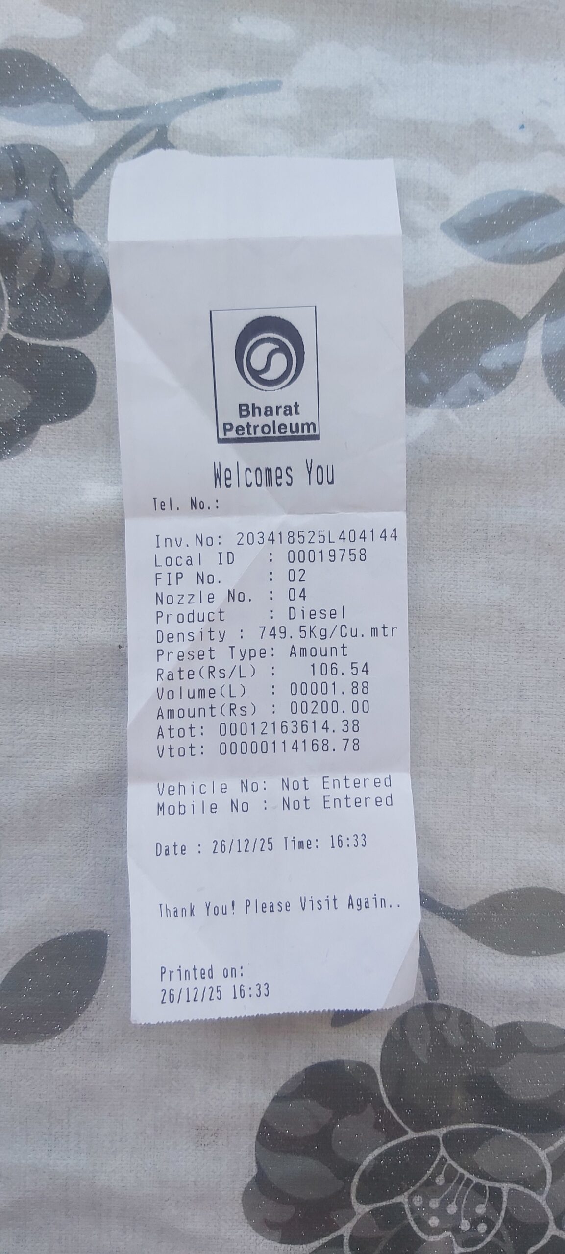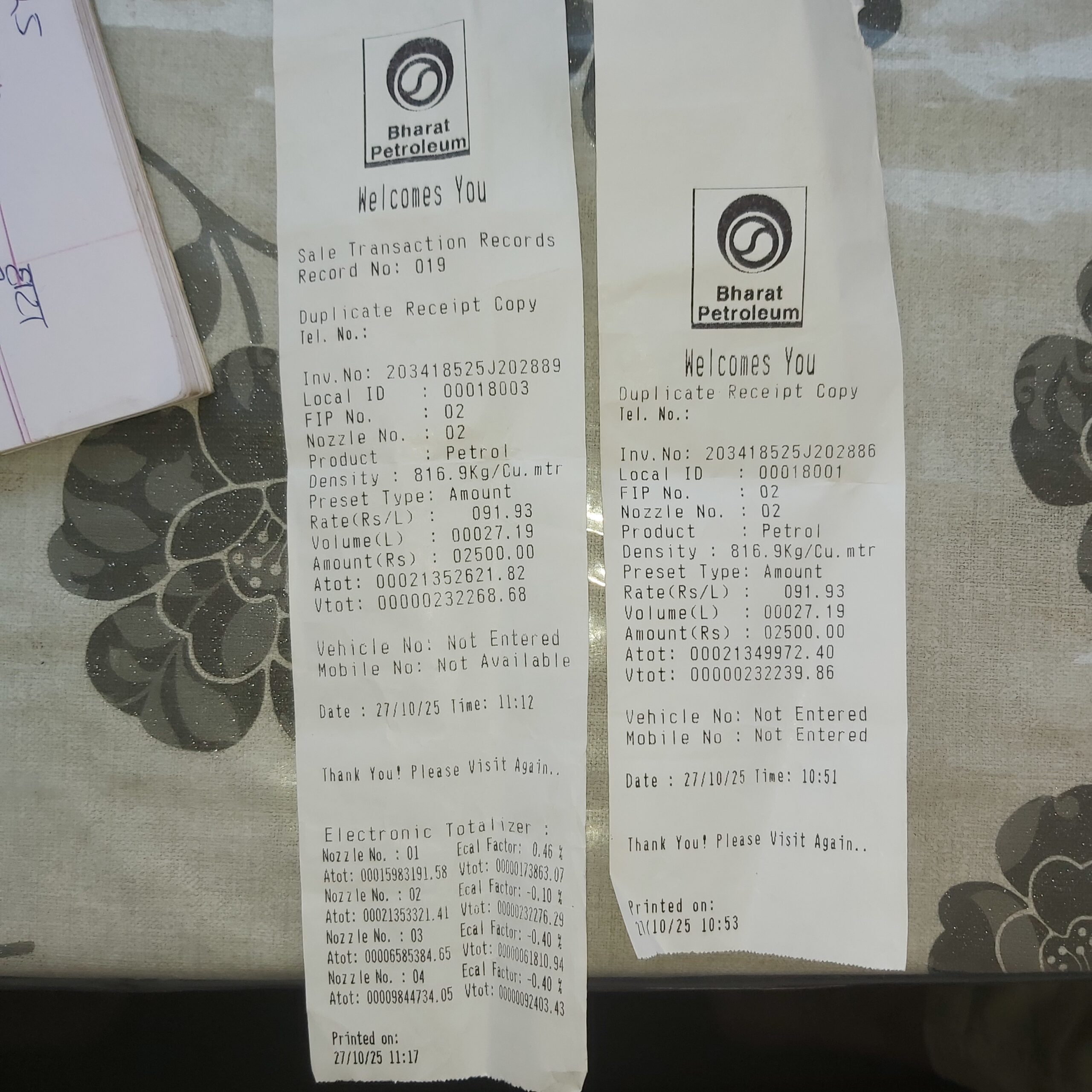 | 2025-03-12 | Diesel | ₹ 0.00 | ₹ 5,000.00 | ₹ 6,338.00 | ₹ 0.00 | |||||