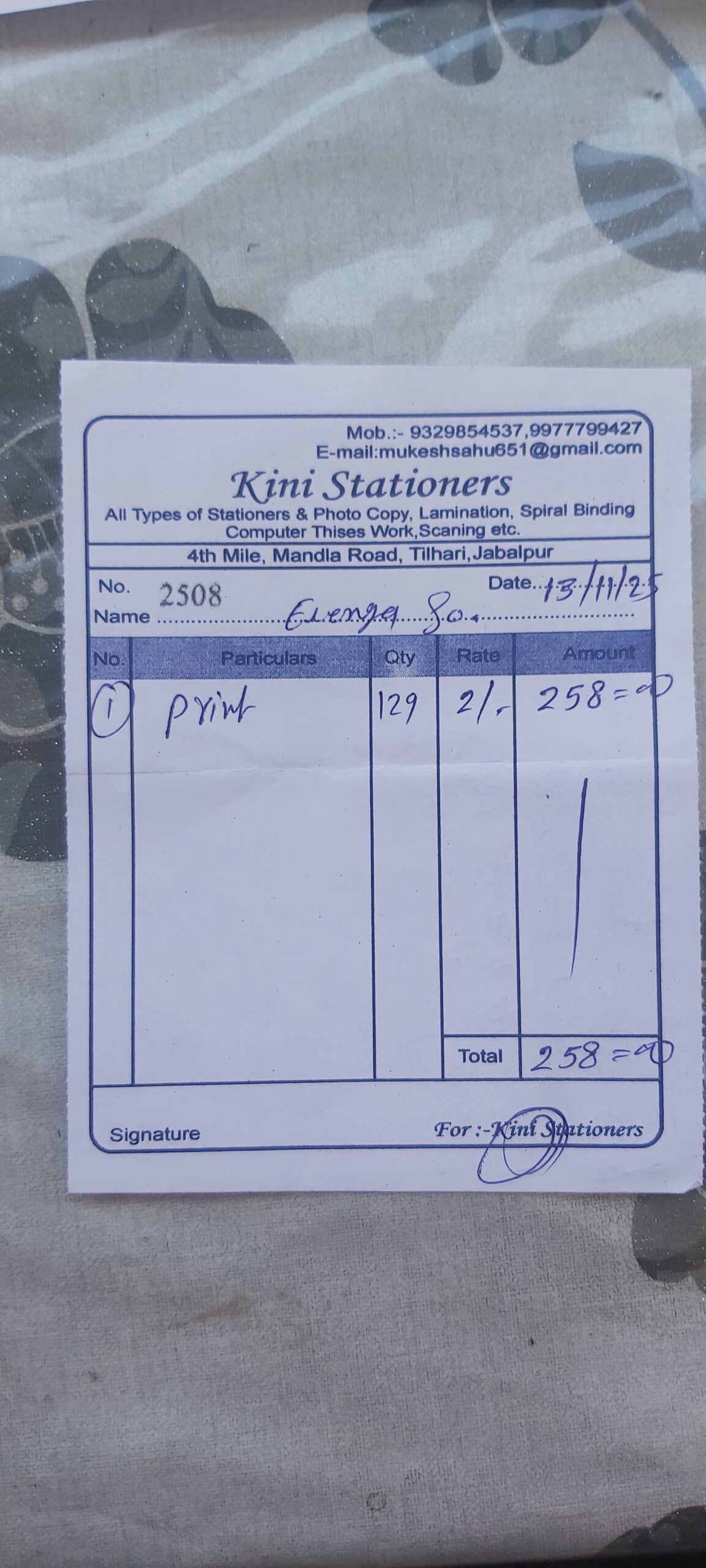 | 2025-03-20 | Photocopy | ₹ 0.00 | ₹ 20.00 | ₹ 4,218.00 | ₹ 0.00 | |||||
