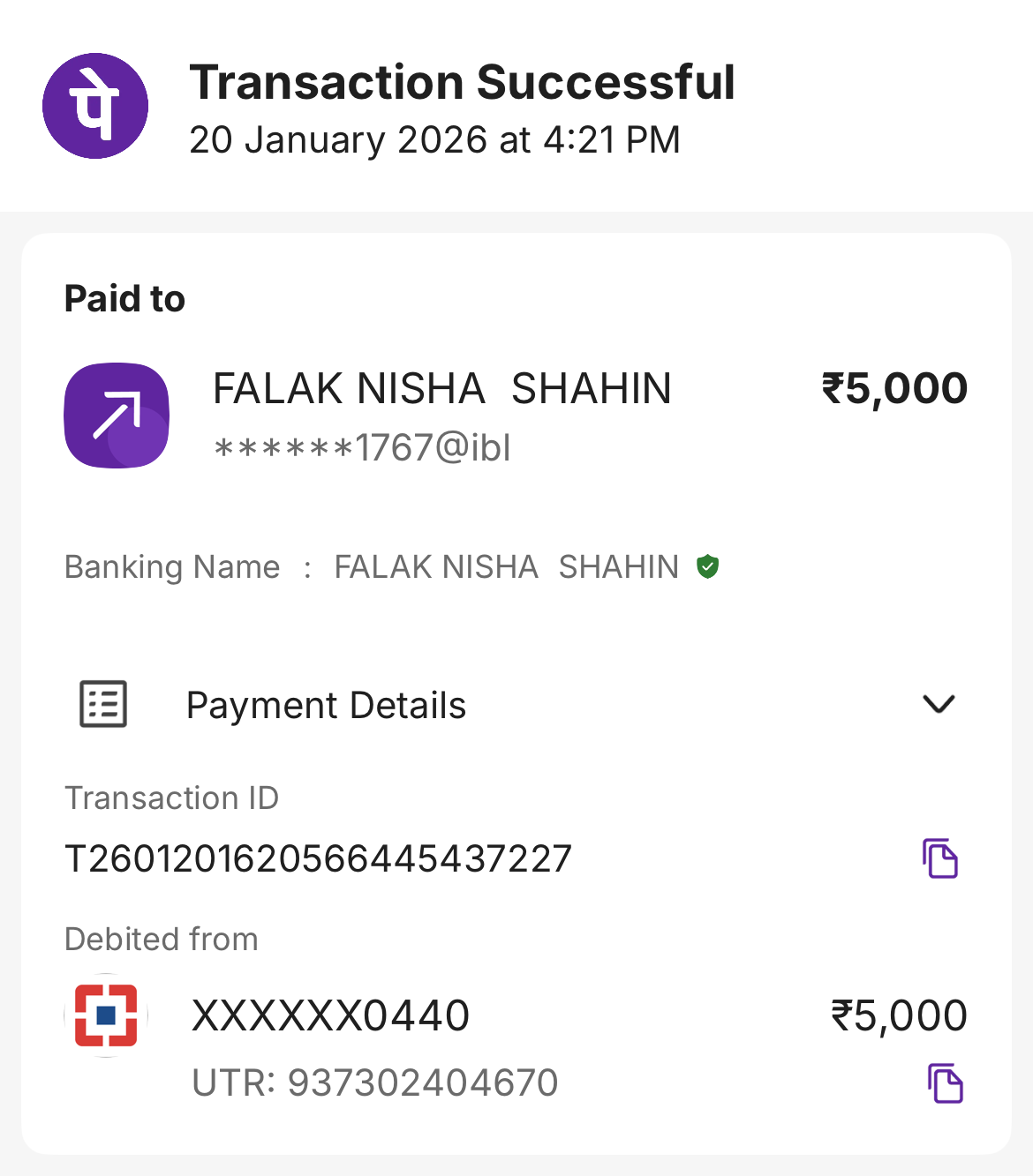 | 2026-01-05 | Internal Transfer - credit | ₹ 20,000.00 | ₹ 84,366.00 | ₹ 2,775.71 | ₹ -258,483.00 | |||||