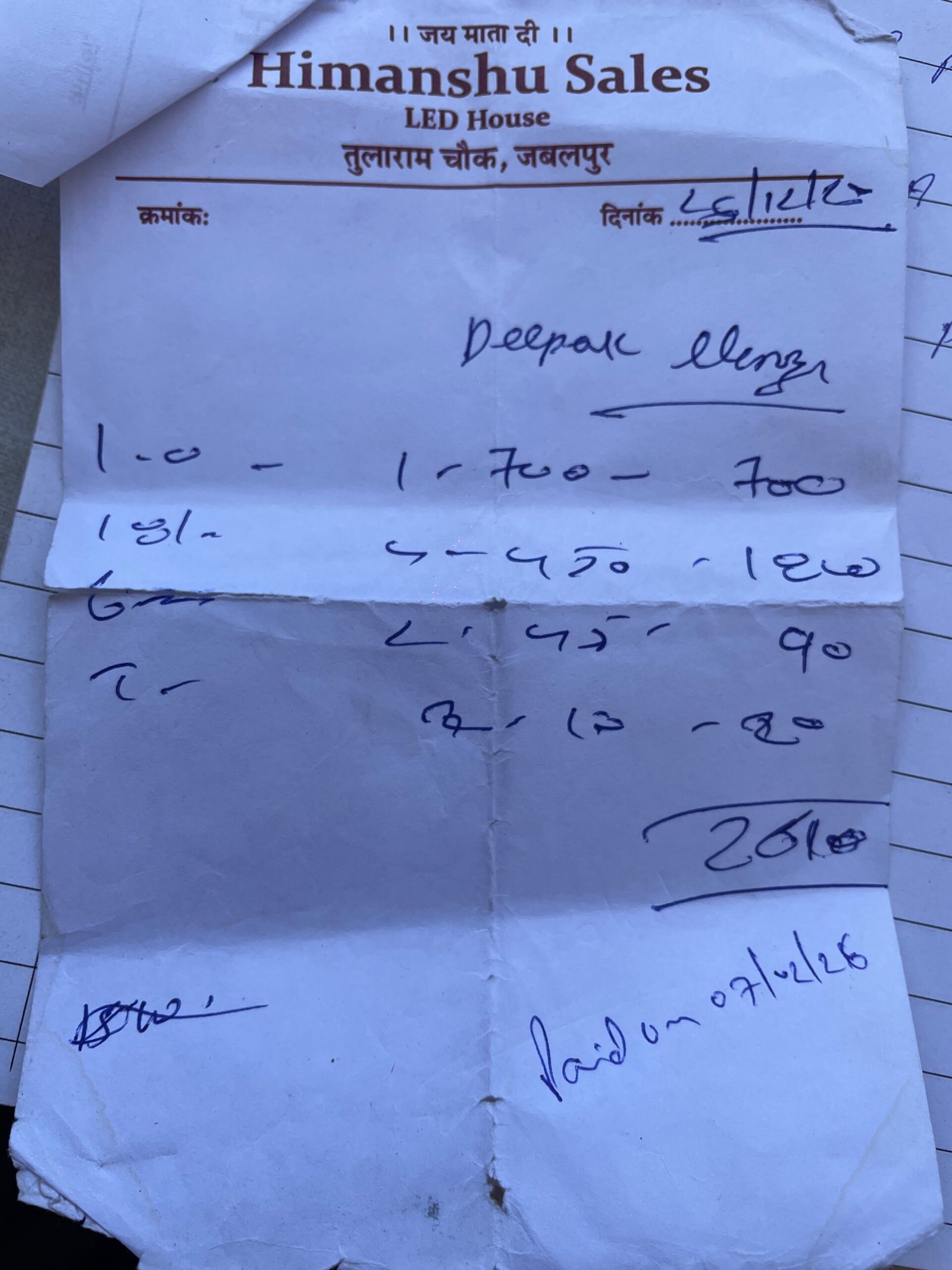 Maintenance — 2026-02-02 • Deepak • 5 receipts