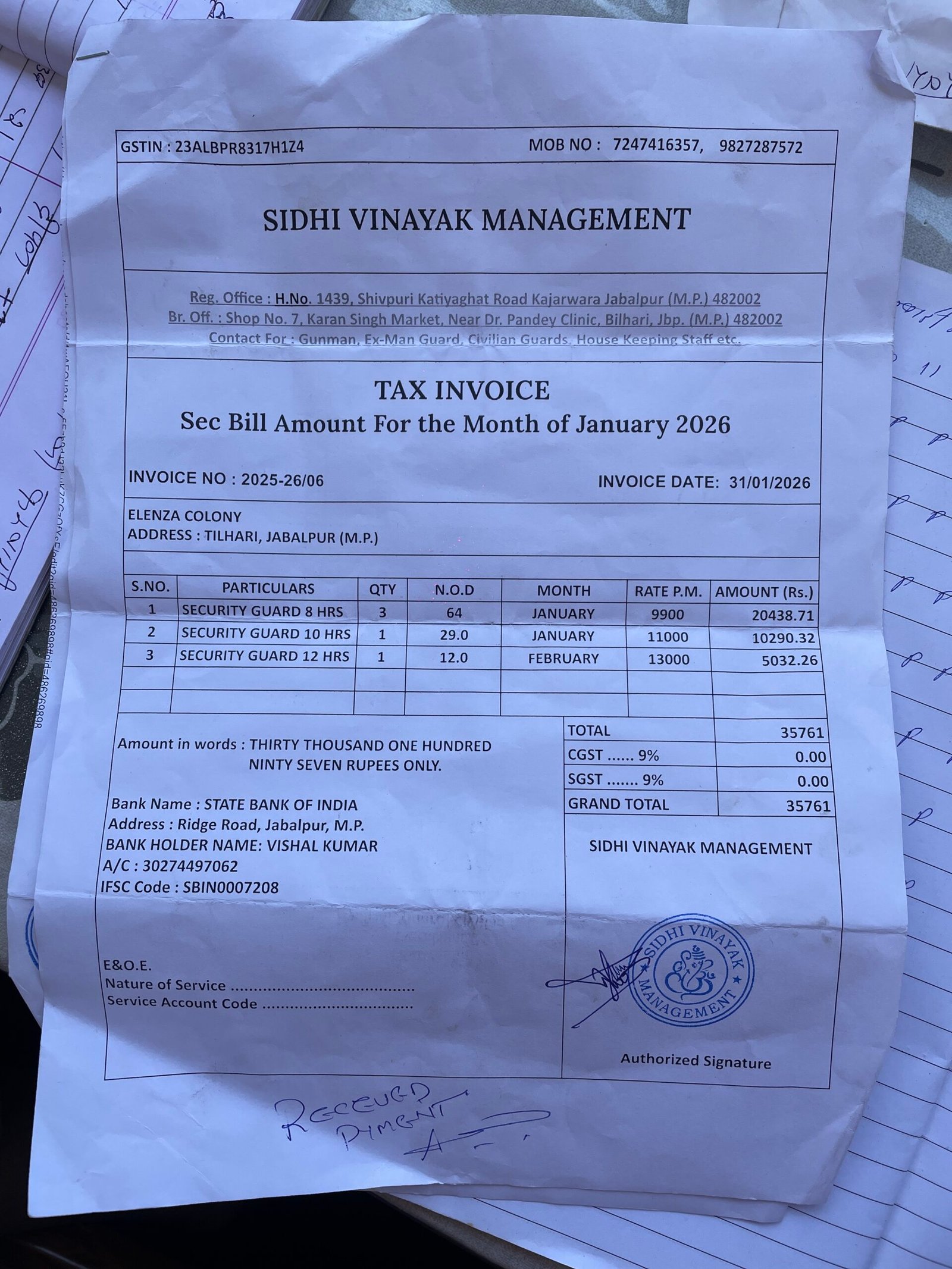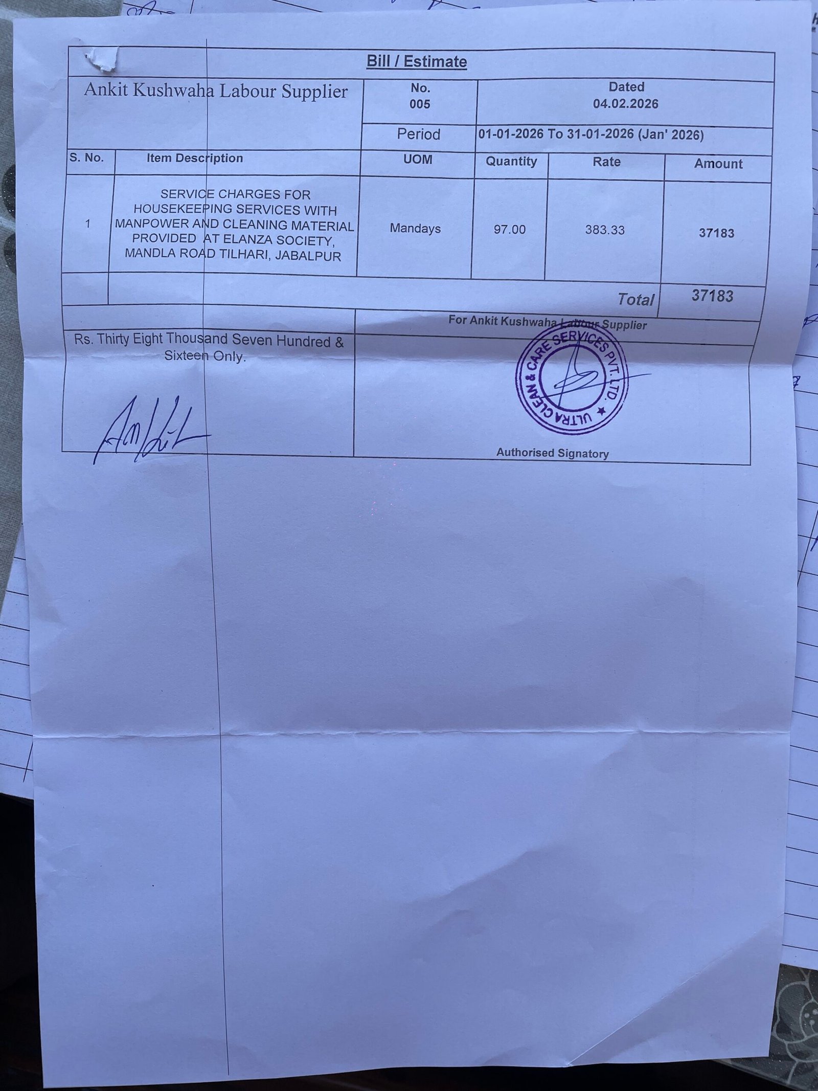 Maintenance — 2026-01-31 • Society Bank A/C • 1 receipts