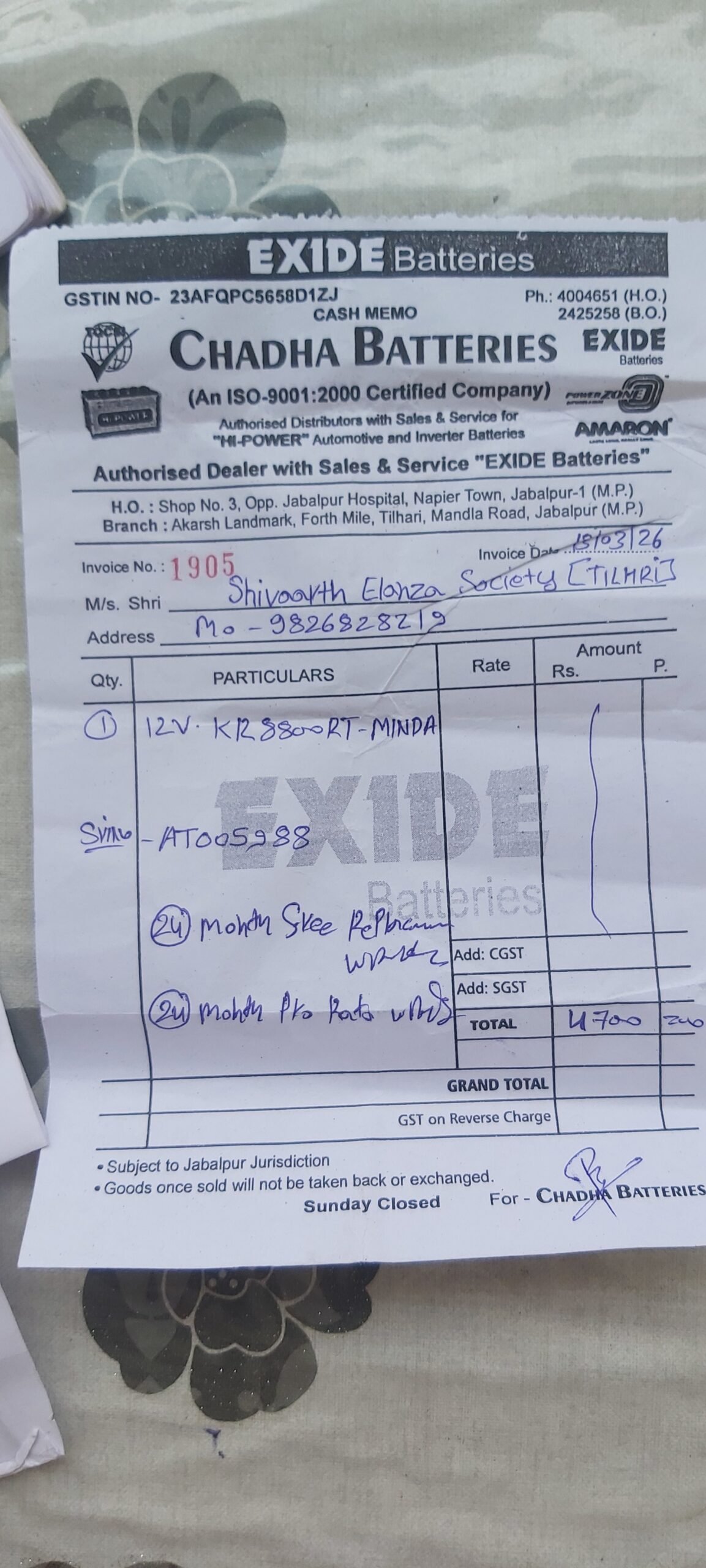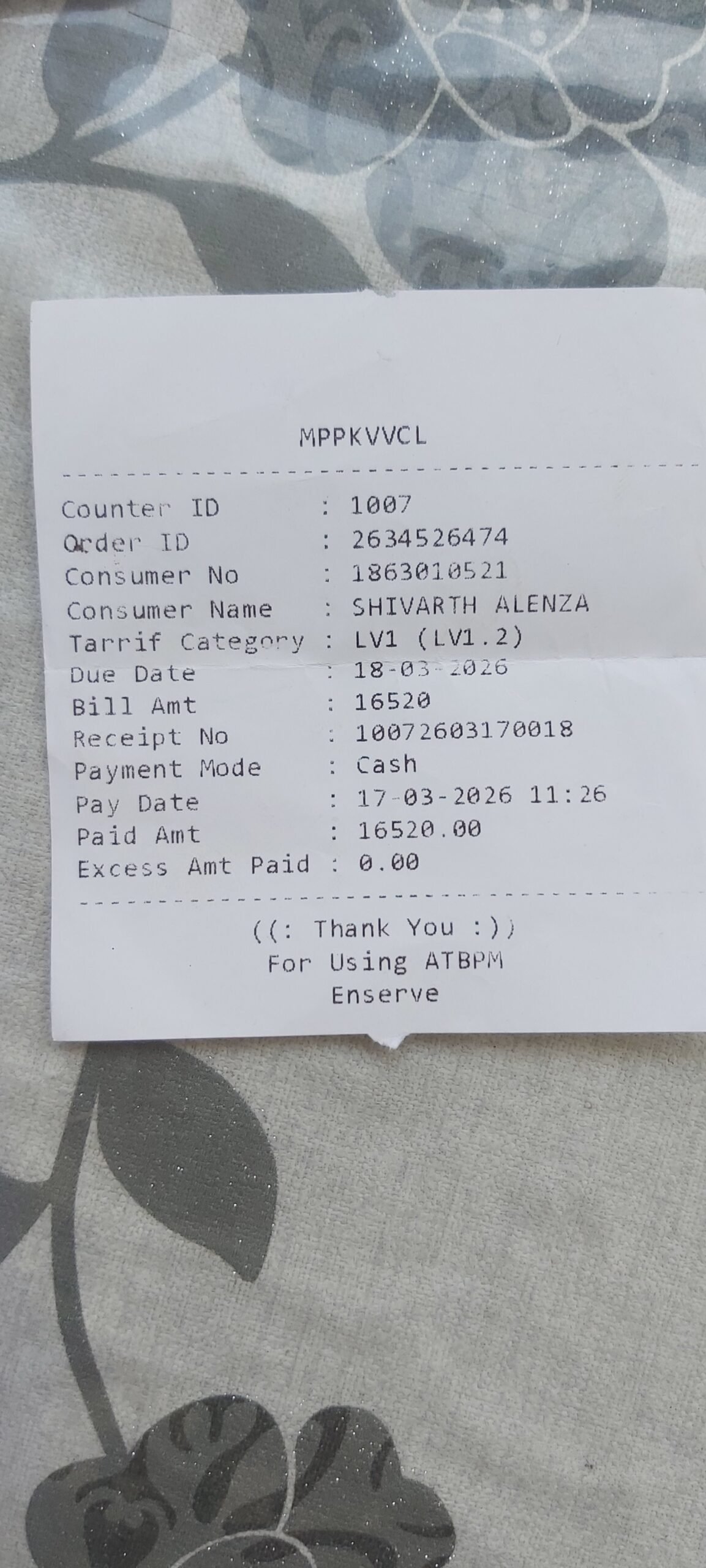 Maintenance — 2026-03-16 • Society Bank A/C • 1 receipts