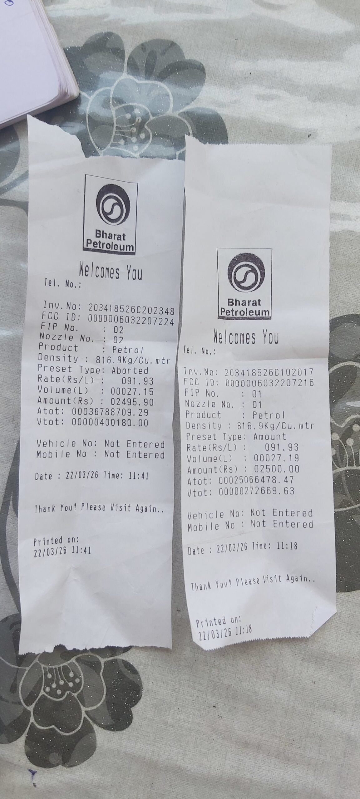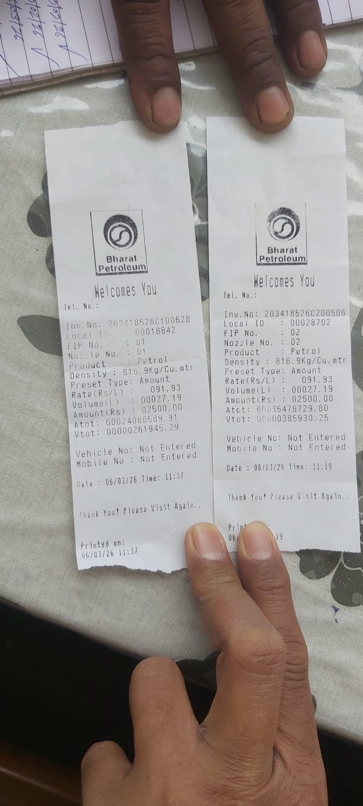 | 2026-03-22 | Diesel 📎 | ₹ 4,946.00 | ₹ -3,249.00 | ₹ -10,517.29 | ₹ -585,483.00 | |||||
