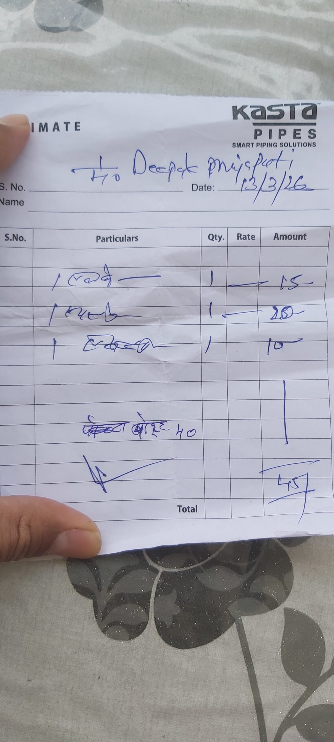 Maintenance — 2026-03-15 • Deepak • 6 receipts