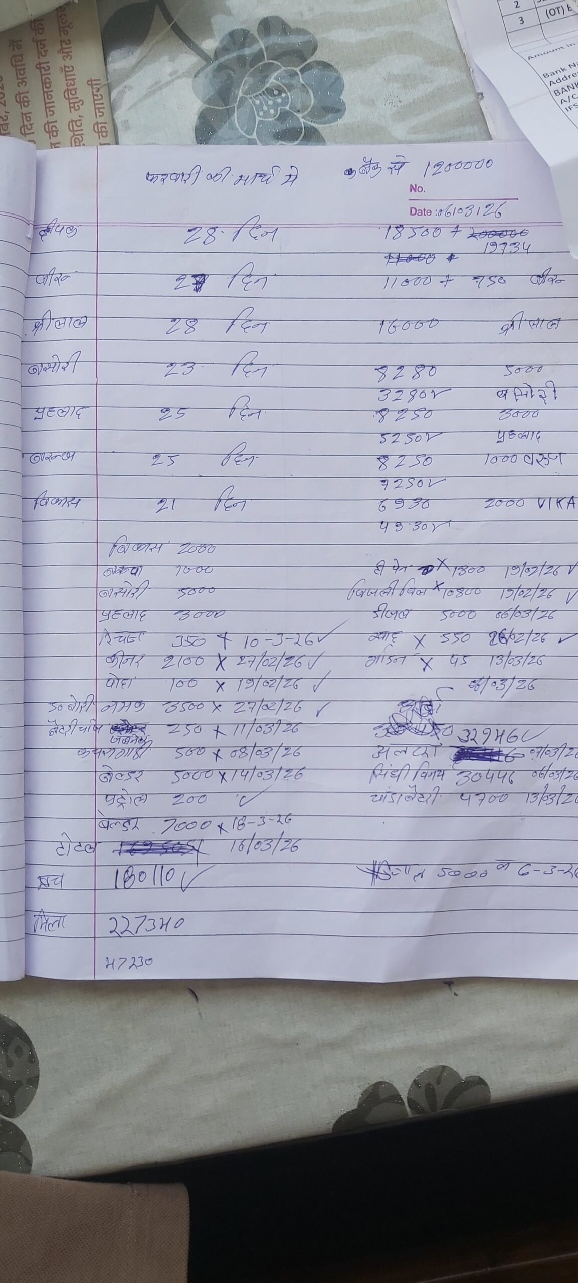 | 2026-03-06 | Mishra (Guard) | ₹ 16,000.00 | ₹ -70,442.00 | ₹ -10,517.29 | ₹ -464,483.00 | |||||